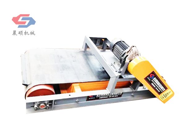 電磁除鐵器的基礎(chǔ)上增加了驅(qū)動(dòng)電機(jī)、滾筒、帶刮板的缷鐵膠帶等組成的缷鐵機(jī)構(gòu)。在工作過(guò)程